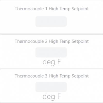 A type K thermocouple is used to assure that exhaust temperatures are high enough for correct operation of the system before closed loop control is enabled An additional thermocouple is used to monitor outlet temperature. The AFR-500 is designed for use on small engines where the catalyst is assumed to be close to the engine. The engine out temperature is assumed to be representative of the catalyst in temperature. The three shutdown thresholds are Engine/Cat In temperature too high, Cat Out temperature too high, and Catalyst temperature rise too high. Temperature limit setpoints are provided to create a catalyst protection shutdown capability.