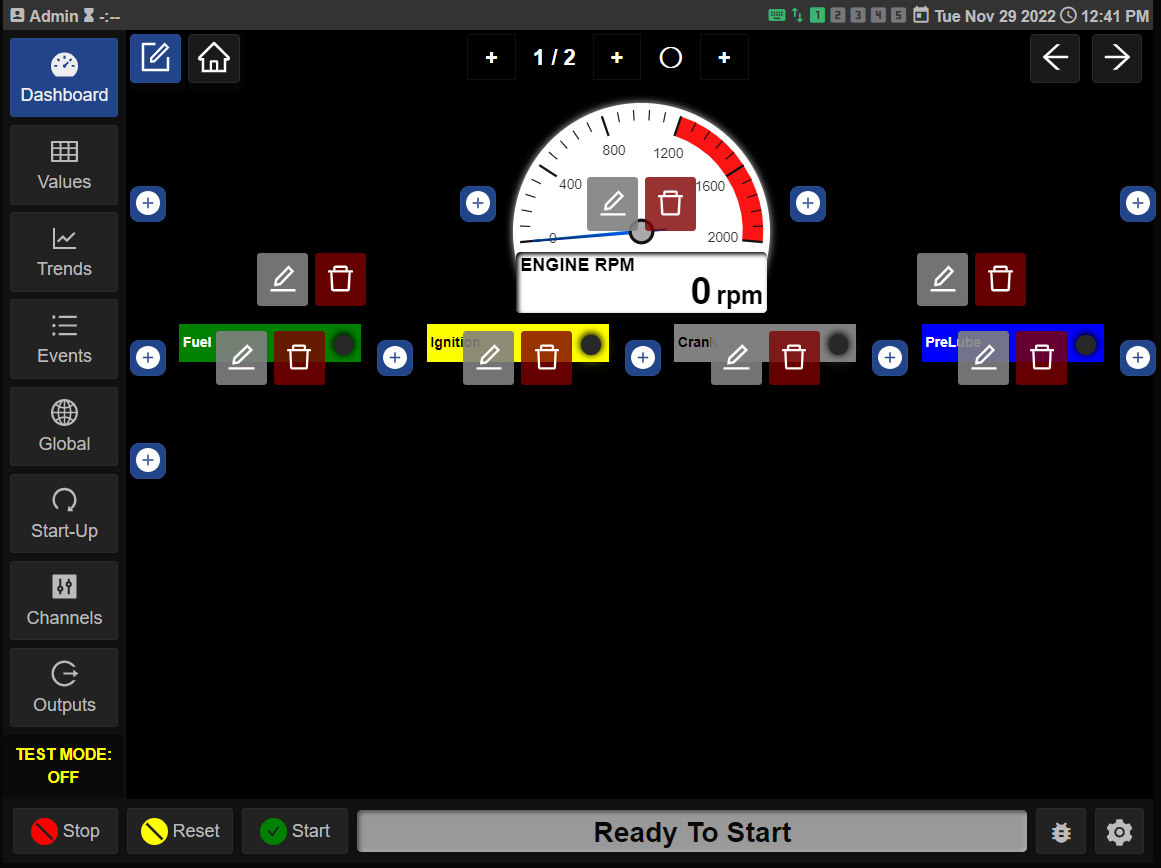 The Dashboard page is displayed on the HMI screen upon system power-up. This is the home page of the DE-4000. The initial view is shown in Figure 3.2.