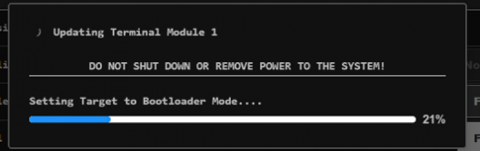Once all the conditions are met, the “Proceed to Update” button should light up and is now able to be selected. A Confirm Selection screen will pop up upon pressing showing the chosen firmware and module, press proceed to continue.