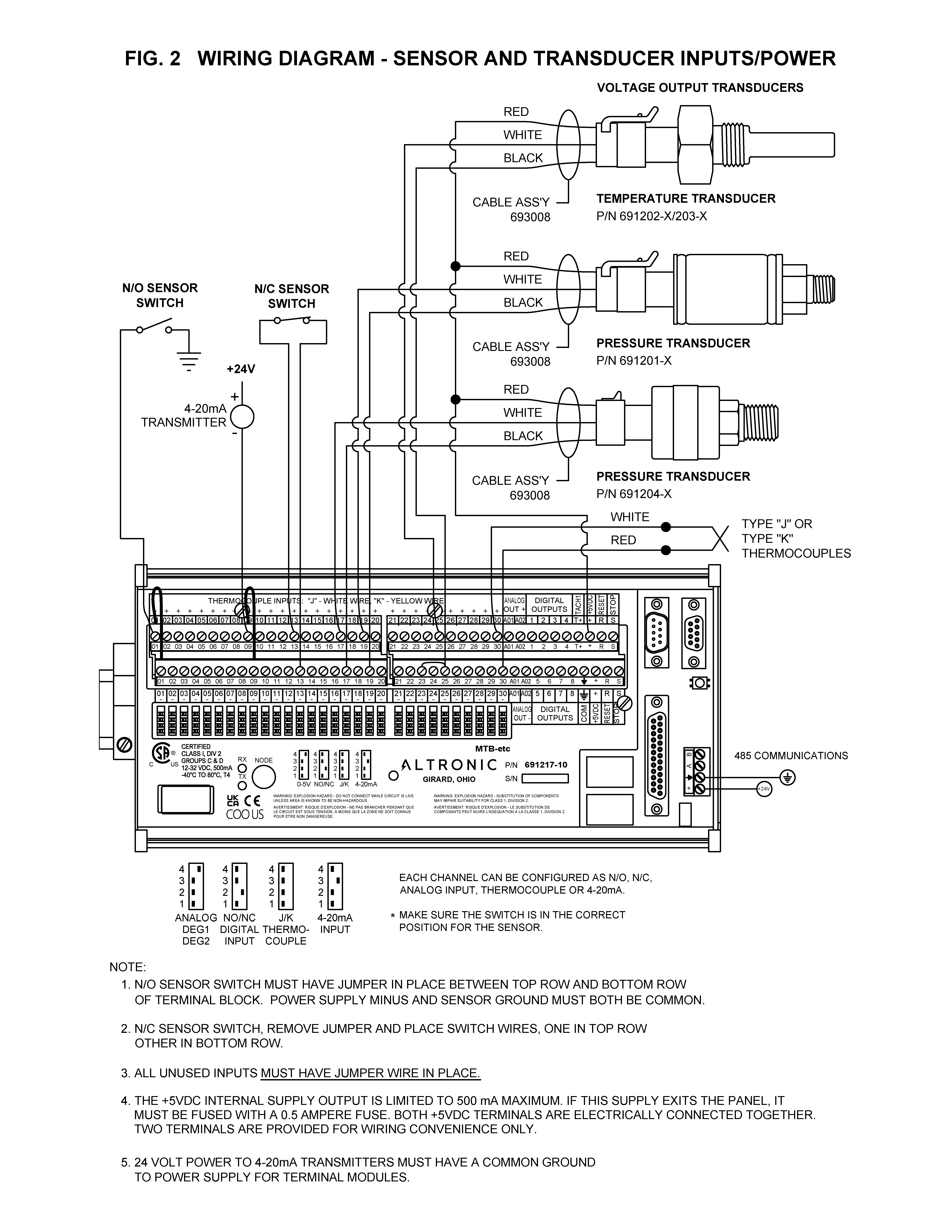 FIGURE 2 — WIRING DIAGRAM — SENSOR AND TRANSDUCER INPUTS/POWER