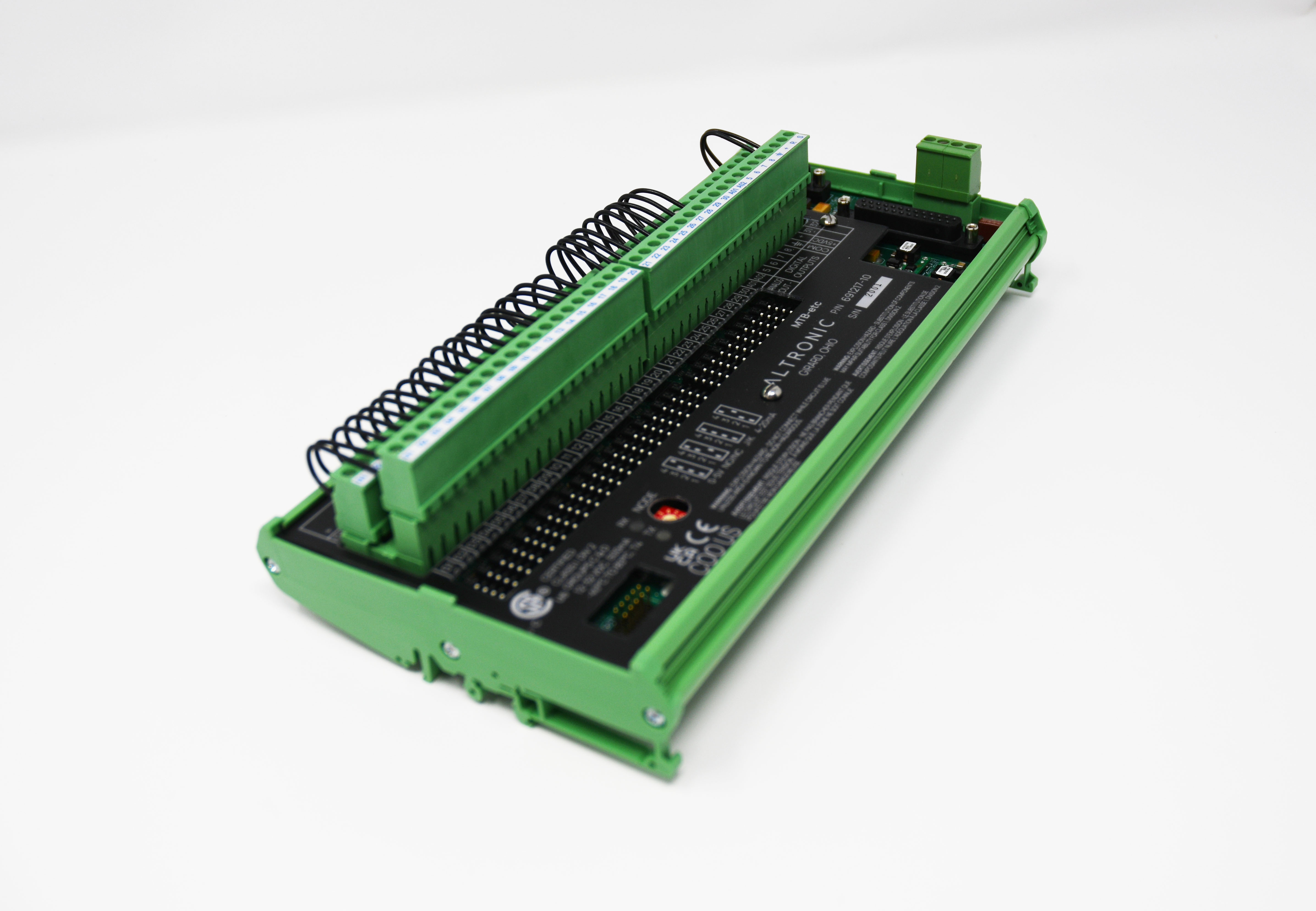 The RS-485 communications is fixed at 38.4k baud, 8, N, 1. The Modbus node number for each board is selected through a mechanical switch on the board. Node numbers are from 1 to 9 allowing for up to 297 analog inputs to be daisy-chained onto one RS-485 port. This product may be used with PLC’s, HMI, or any application where inputs/ outputs are needed. It can be rail mounted for easy installation.